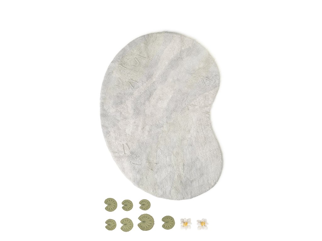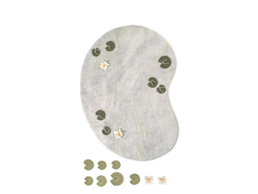 Koberec Swan Lake je jako malé umělecké dílo. Velmi snadno se kombinuje s dalšími produkty z kolekce a jistě Vás nadchne jeho interaktivní využití. Dodekorujte koberec sedmi malými lekníny z nichž je každý pečlivě ručně vyroben s jemnými dvoubarevnými listy a květinovými detaily.