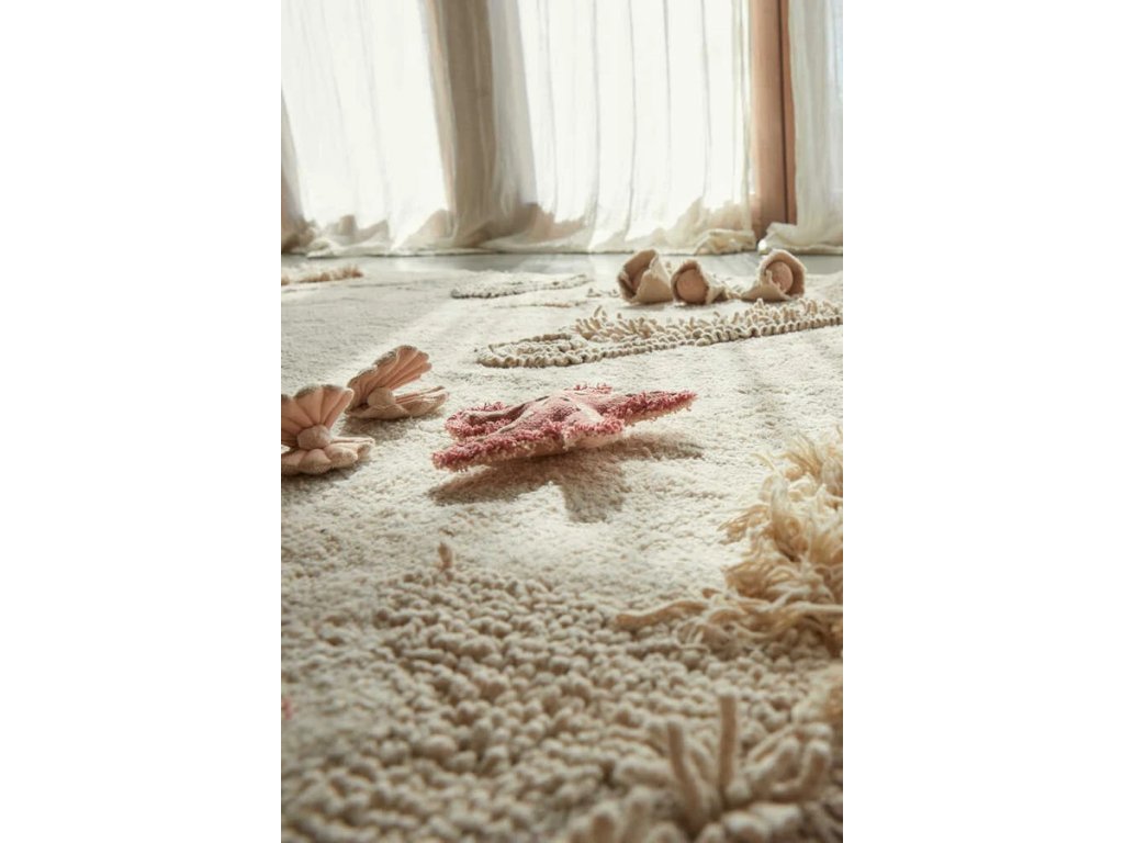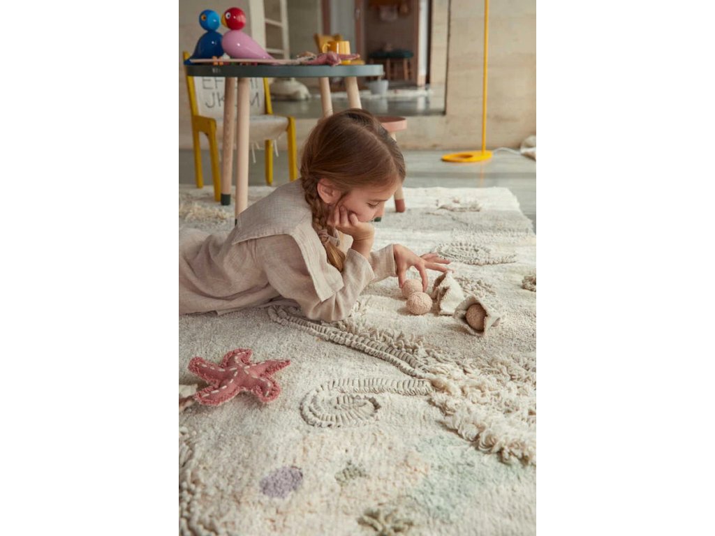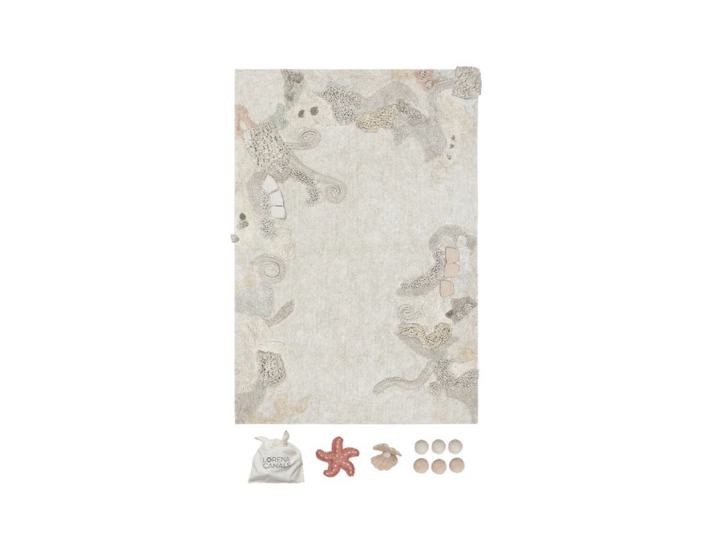 Balblěný dětský hrací koberec Seabed je plný kouzelných hracích prvků, inspirovaný nádhernou podmořskou hladinou, obývanou hvězdicemi, mušlemi, které skrývají perly.