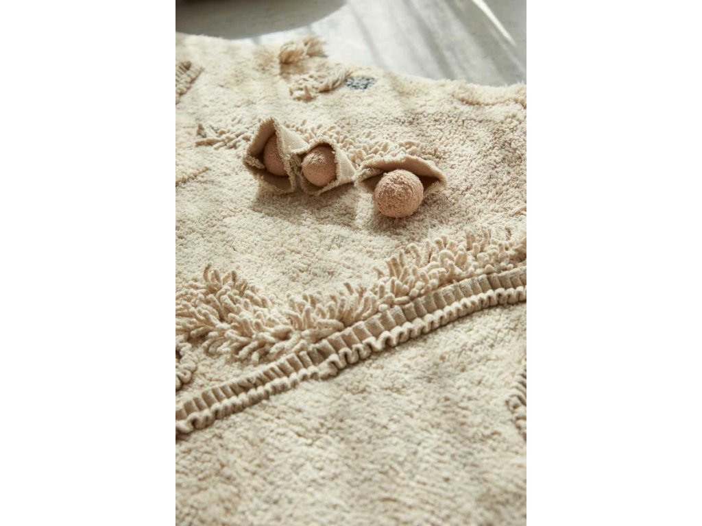 Koberec je dodáván se sadou doplňků - lastura, hvězdice + 6 bambulí a bavlněná taška na uložení koberce.