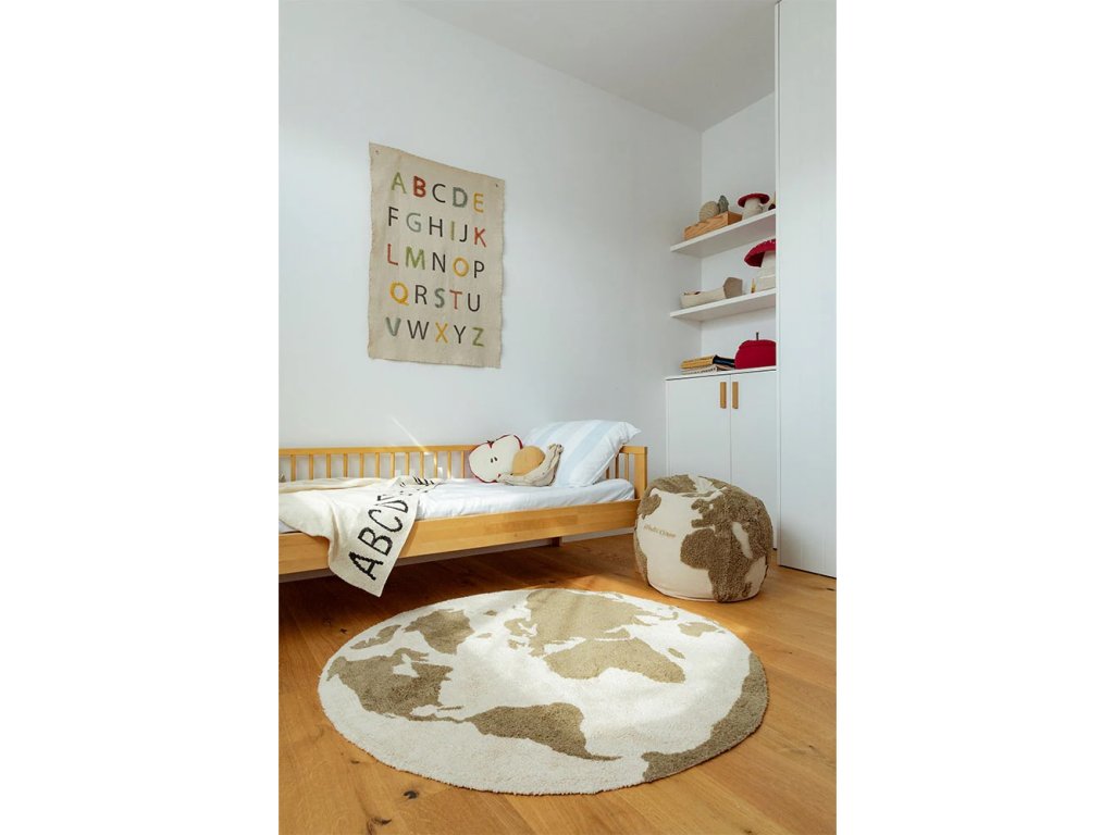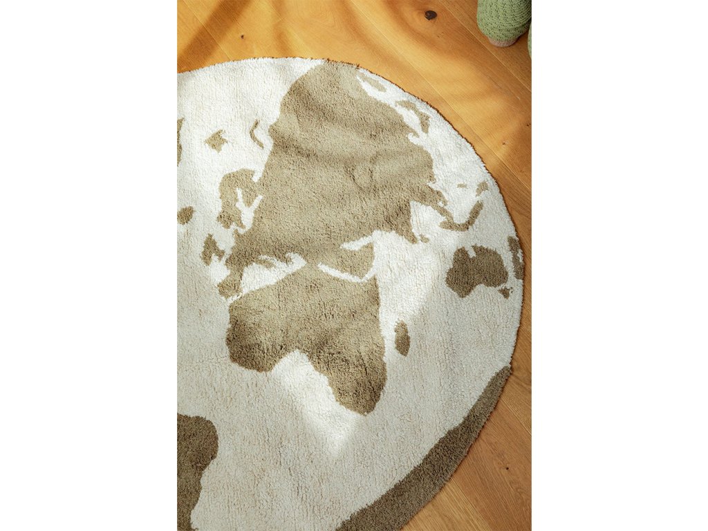 Dětský kulatý koberec o průměru 120 cm World Map od španělské značky Lorena Canals.