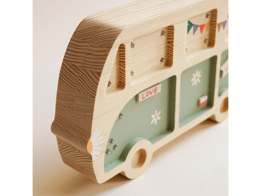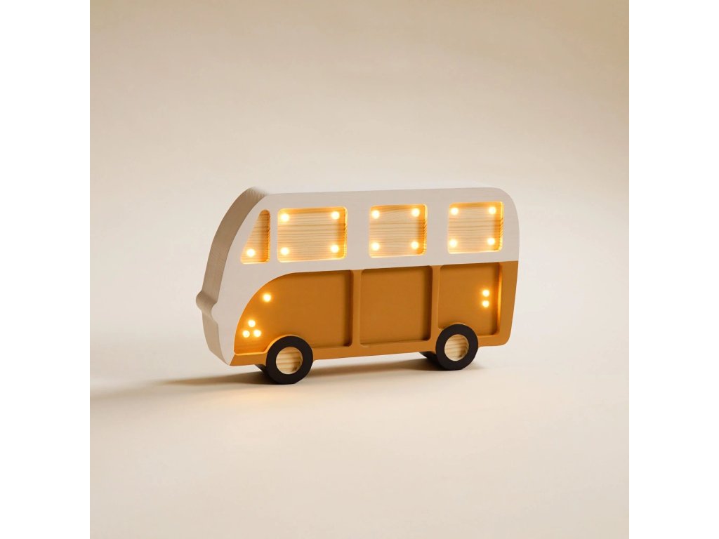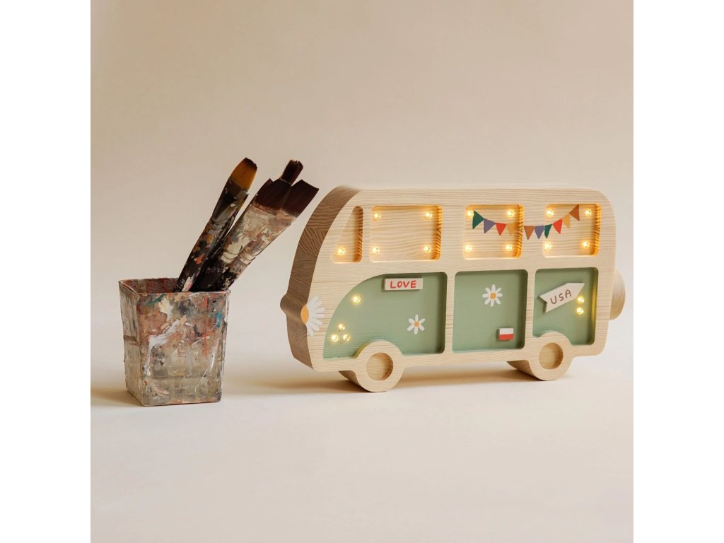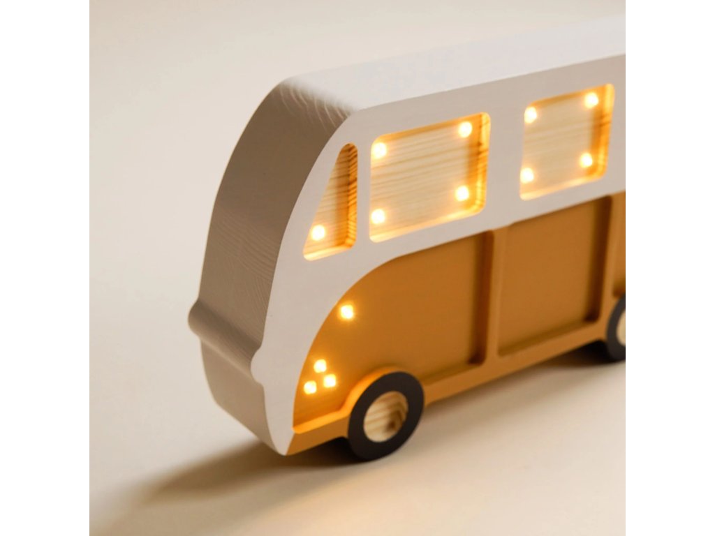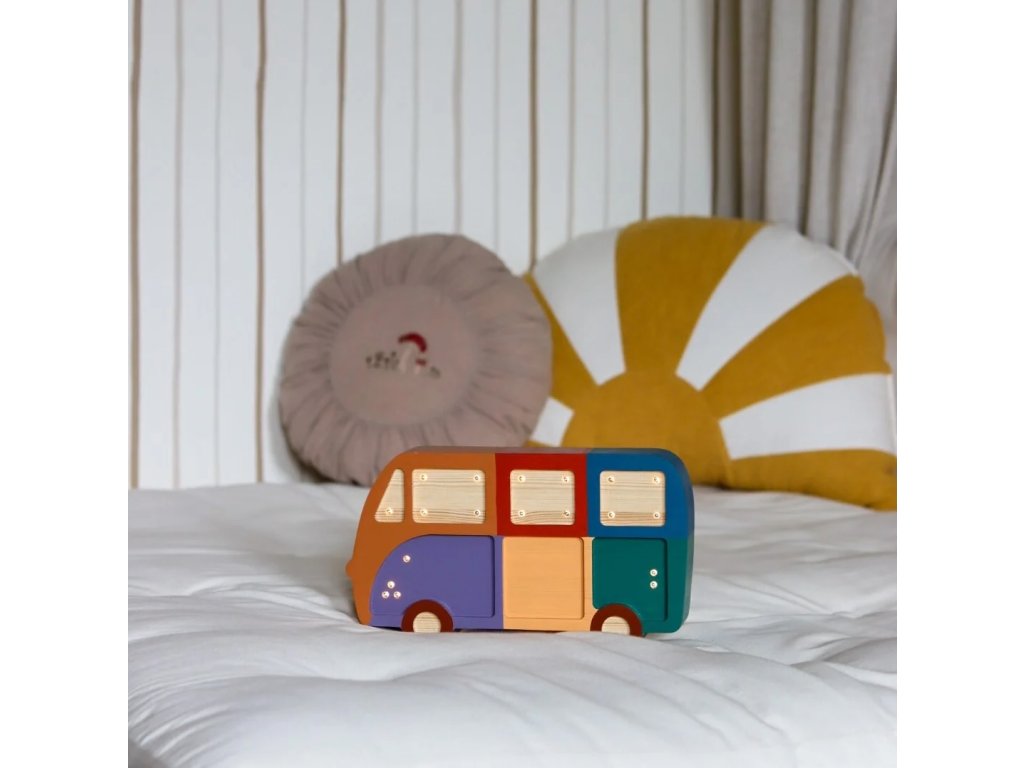 Dětská dřevěná ručně vyrobená noční lampička ve tvaru Dodávky od značky roomGAGA.