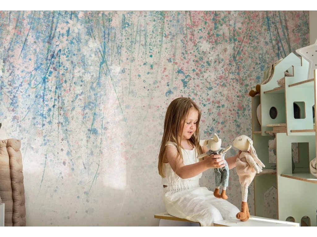 Nádherná tapeta pro malé slečny DAISY UP v modrém provedení od značky Malumi.