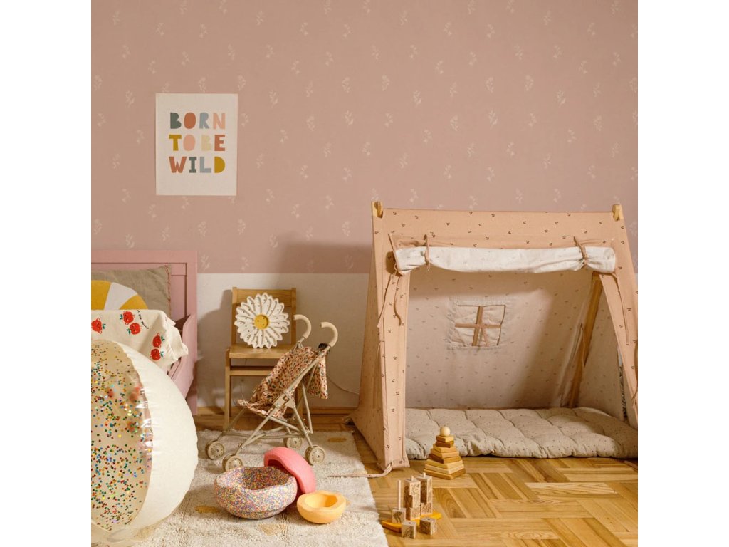 Dětská papírová tapeta s jemnými kvítky Pink Subtle Twigs od značky Dekornik.