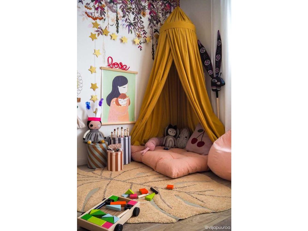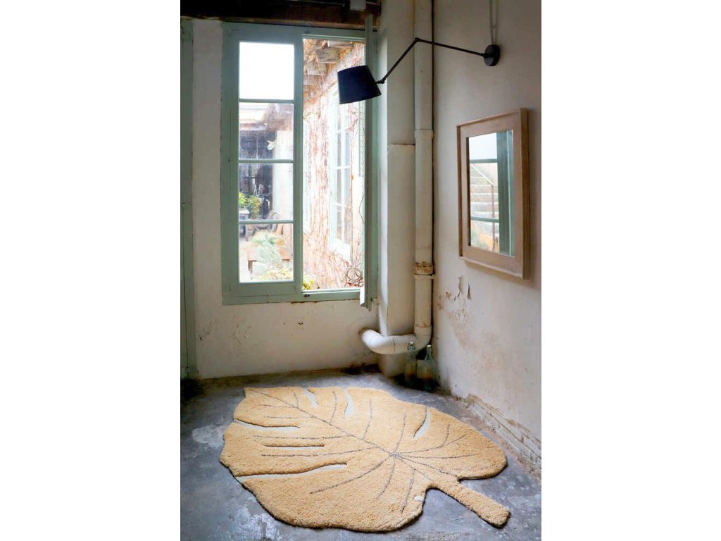 Bavlněný, měkký koberec ruční výroby nejen pro děti. List Monstery v nádherné teplé barvě.
