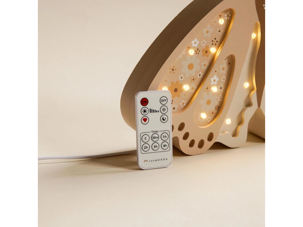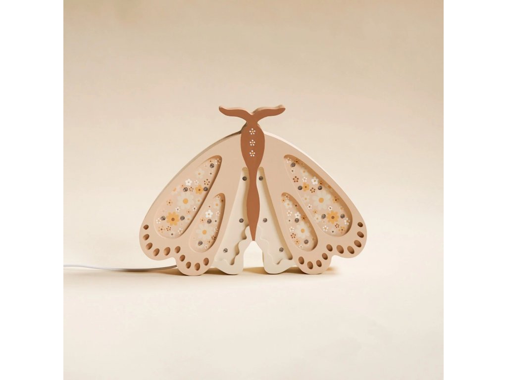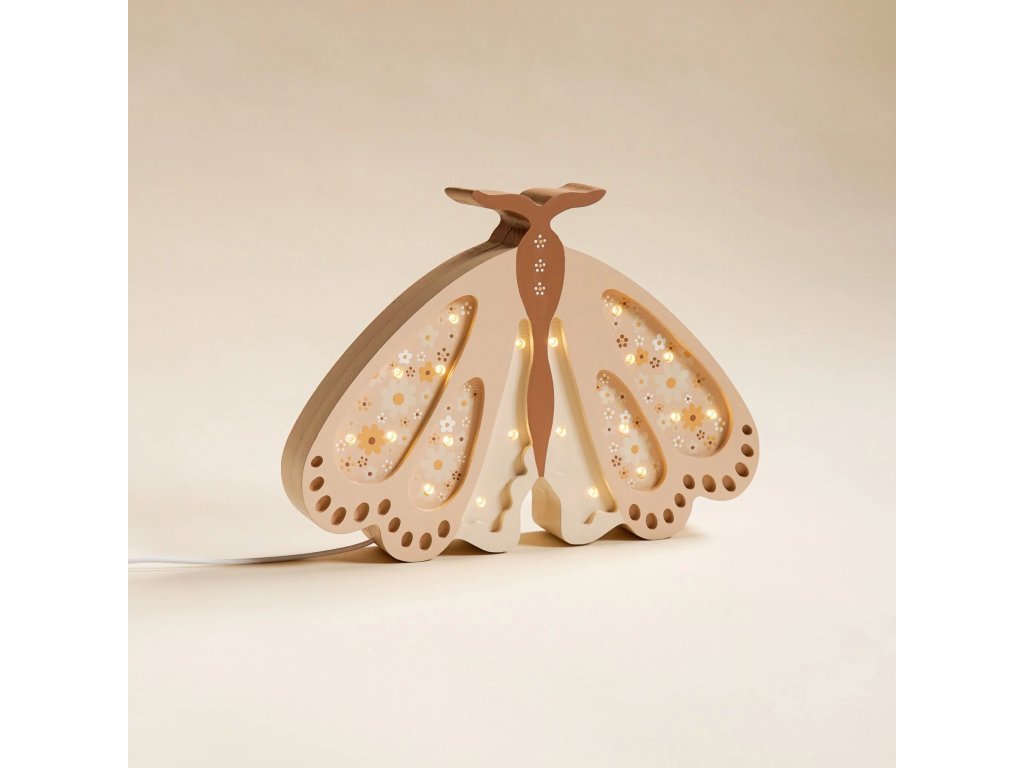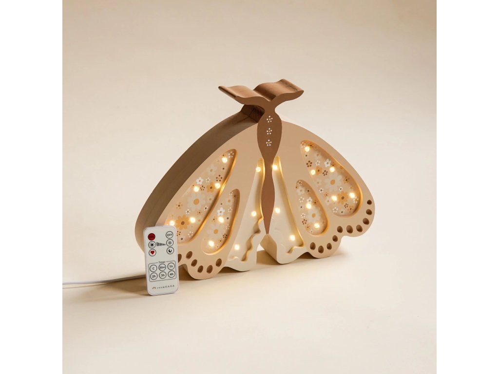 Dřevěná ručně vyrobená dětská noční lampička ve tvaru Můry v béžové barvě od roomGAGA.