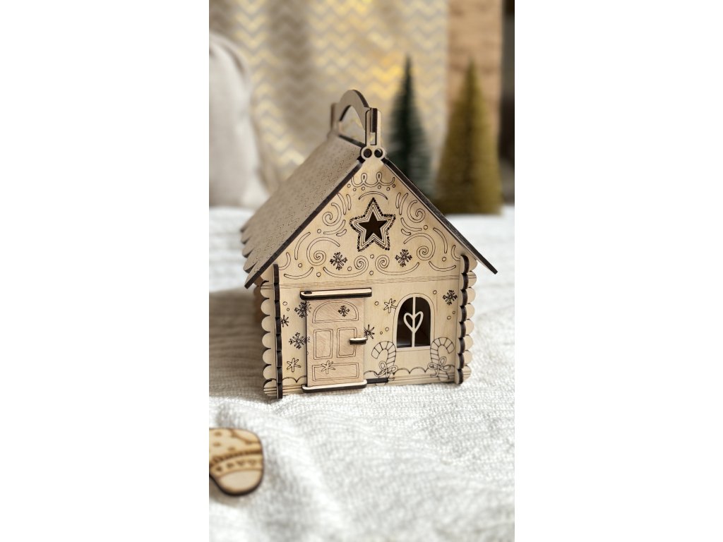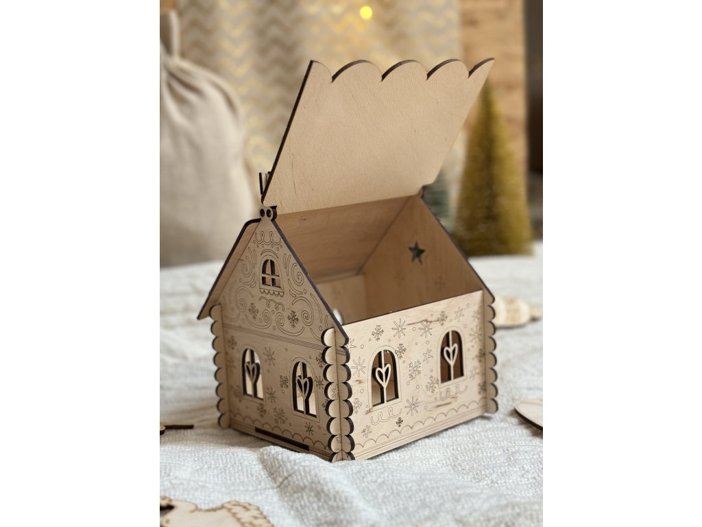 Dřevěná perníková chaloupka s otevírací střechou