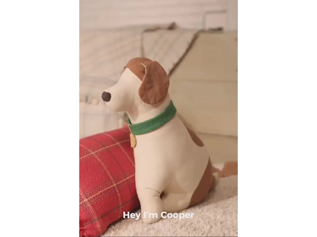 Hravý polštářek má tvar Bígla a je vyroben z měkké bavlněné látky s realistickými detaily, které dokonale zachycují kouzlo tohoto plemene.