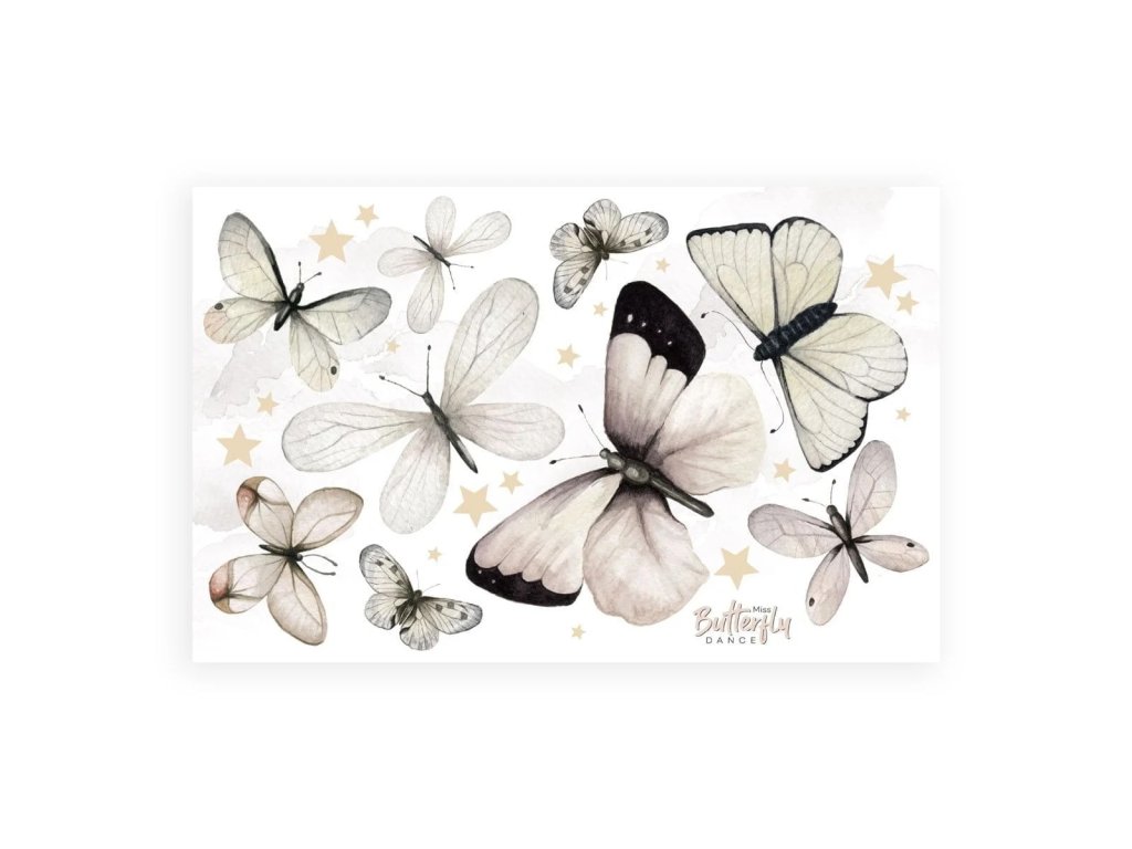 Sada obsahuje 9 motýlků o různých velikostech a hvězdičky.