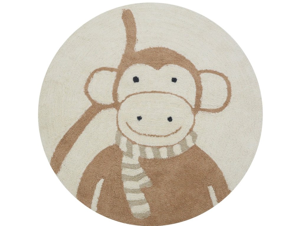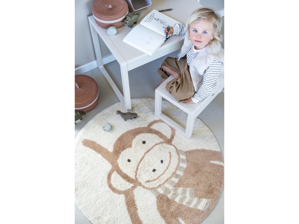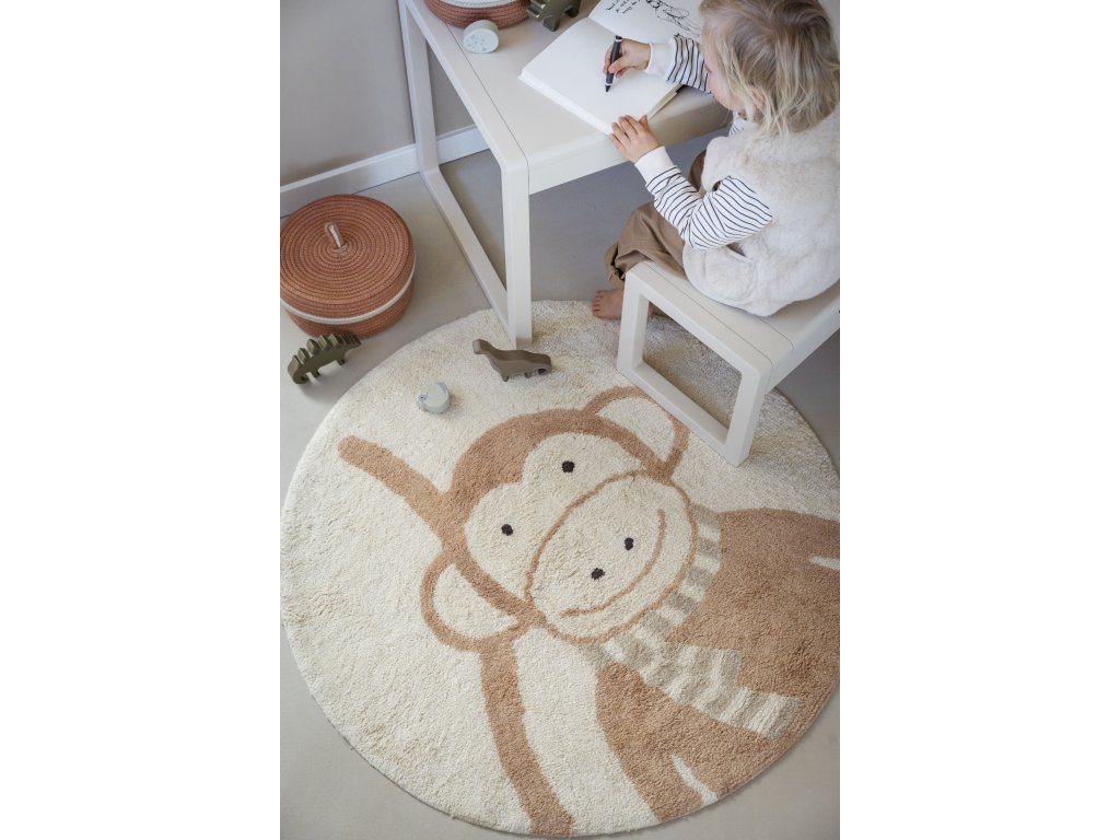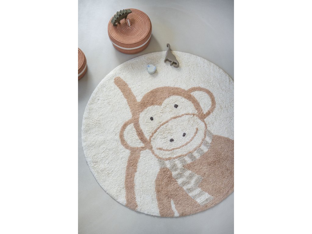 Nádherný dětský koberec s opičkou - MONKEY. Veselý, hravý v příjemných přírodních tónech.